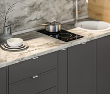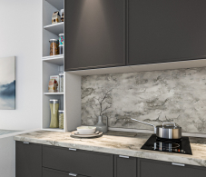 Удобство в уходе: Гладкие поверхности фасадов легко очищаются, что делает уход за кухней простым и быстрым.