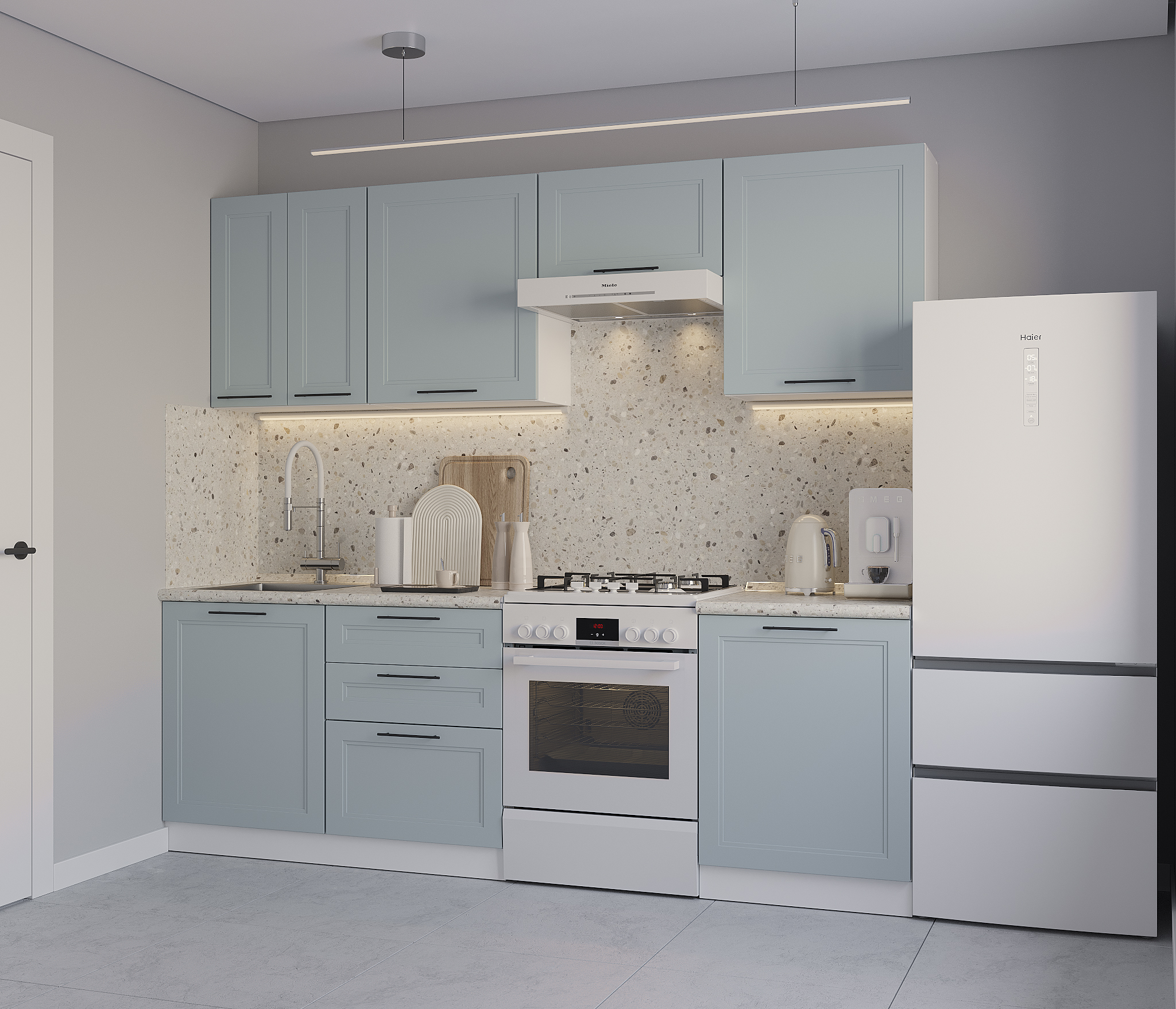 По крайней мере, подобрать нужное число полочек и отделений, тумб под мойку и бытовую технику, указать, нужна ли вам кухонная плита целиком или вы рассчитываете отдельно поставить духовку и варочную поверхность. К тому же надо чётко указать, газовая у вас плита или электрическая. Или же при газовой варочной поверхности вы хотите электрическую духовку с грилем.