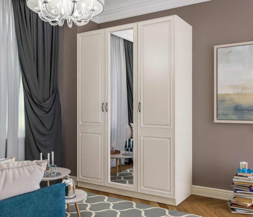 Отзывы о Столплит Шкаф 3х дверный с зеркалом Гранд / Ливерпуль СБ-3512 Дуб Приморский Белый/МДФ Классика Светлый