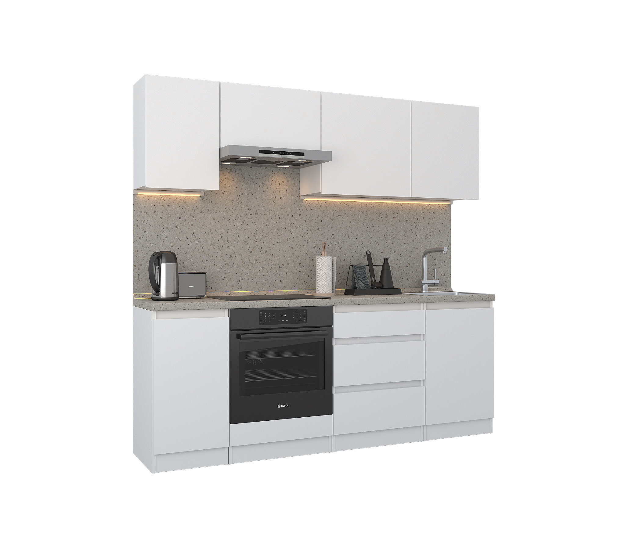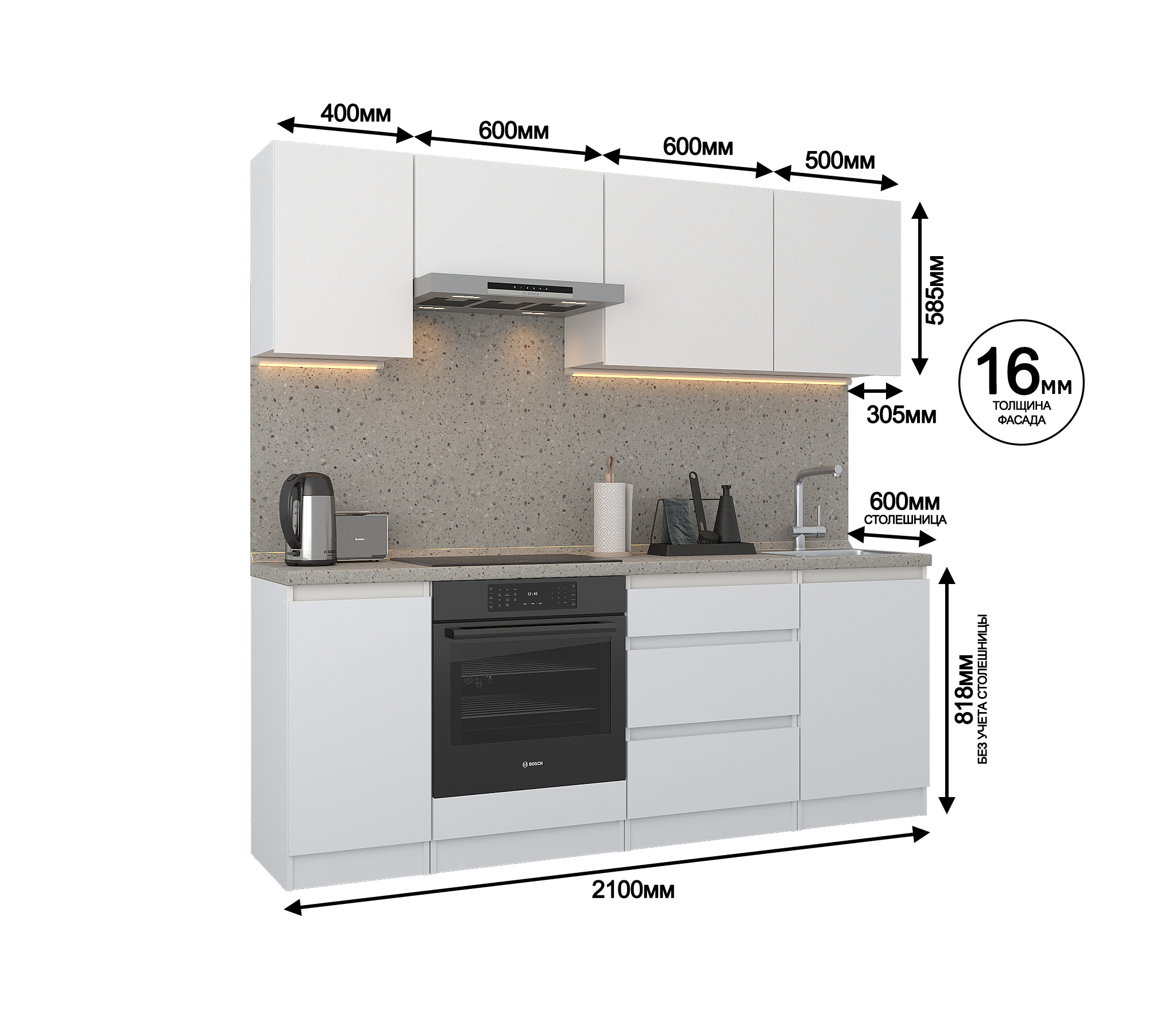Кухонный гарнитур Леон прямой 210 см, белый (Белый)