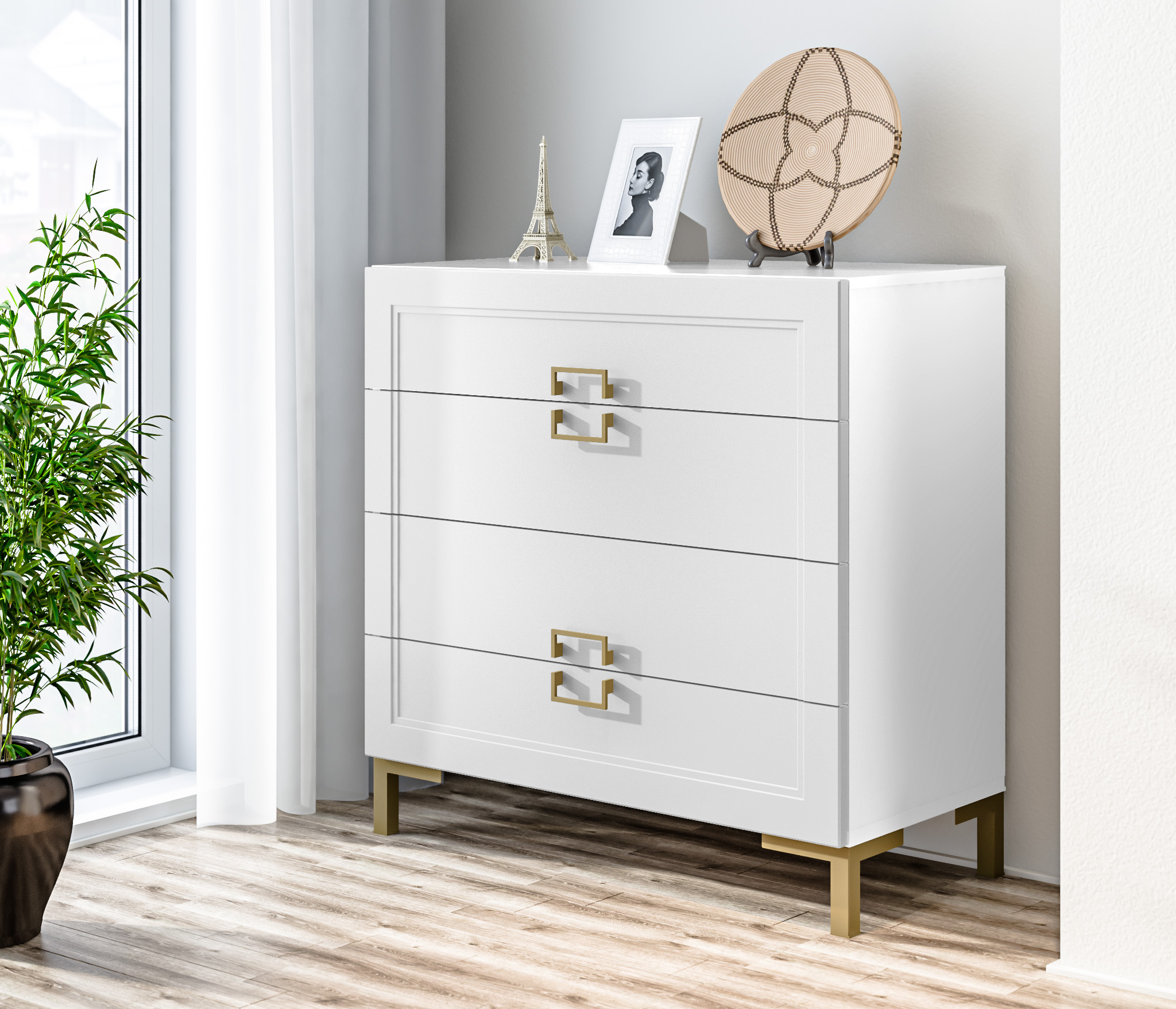 Комод Ассоль СБ-3434 Белый/МДФ Белый Код 00000329353