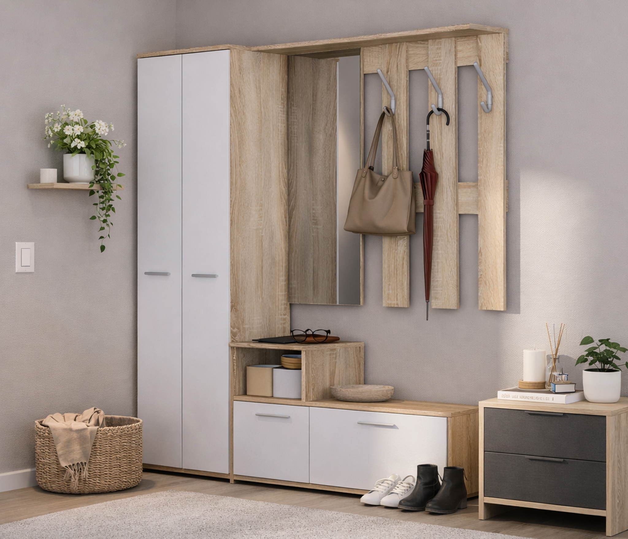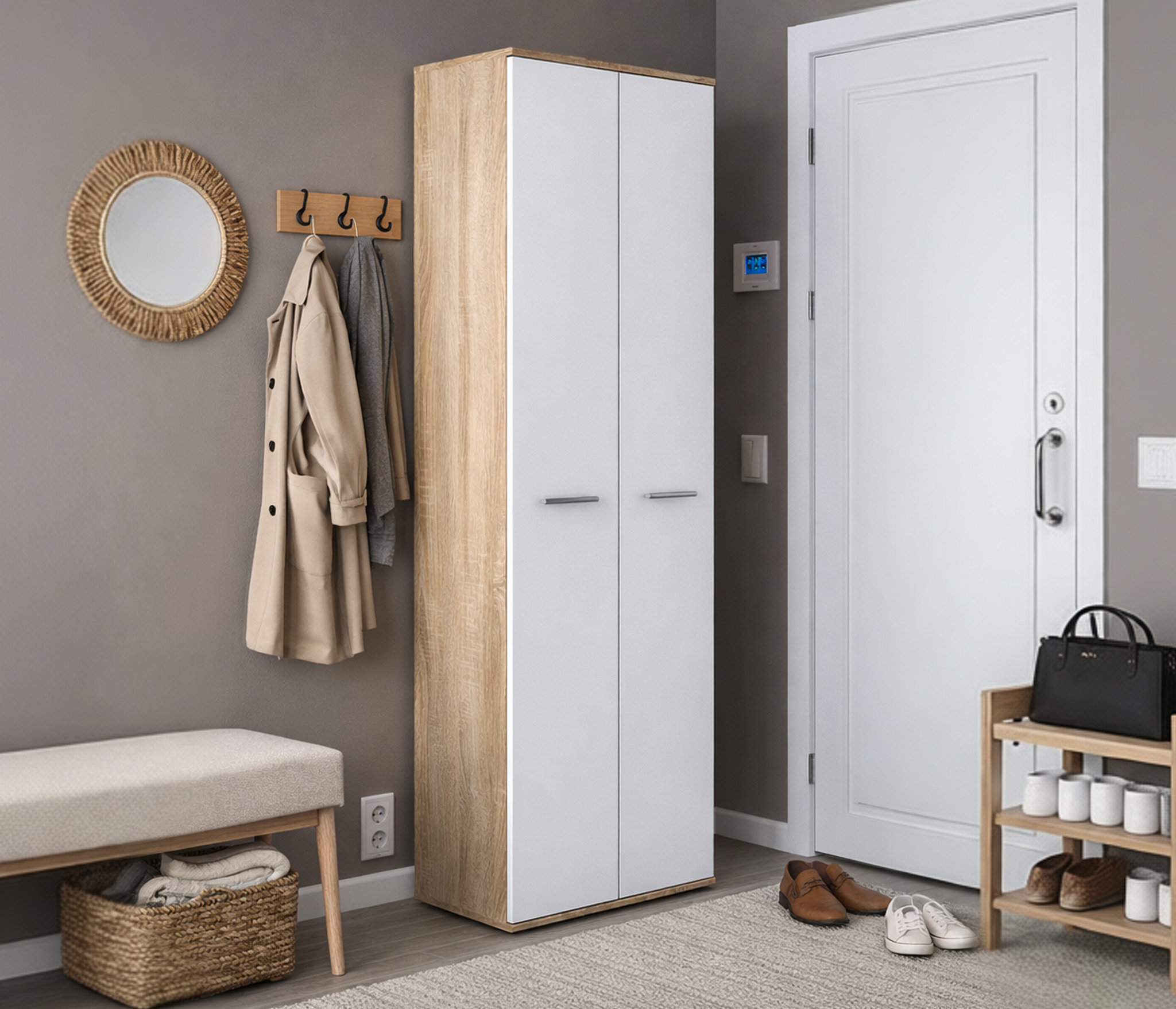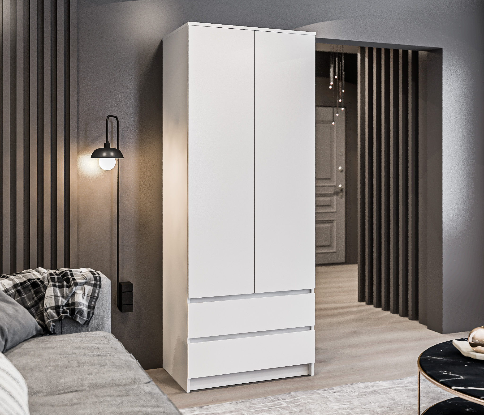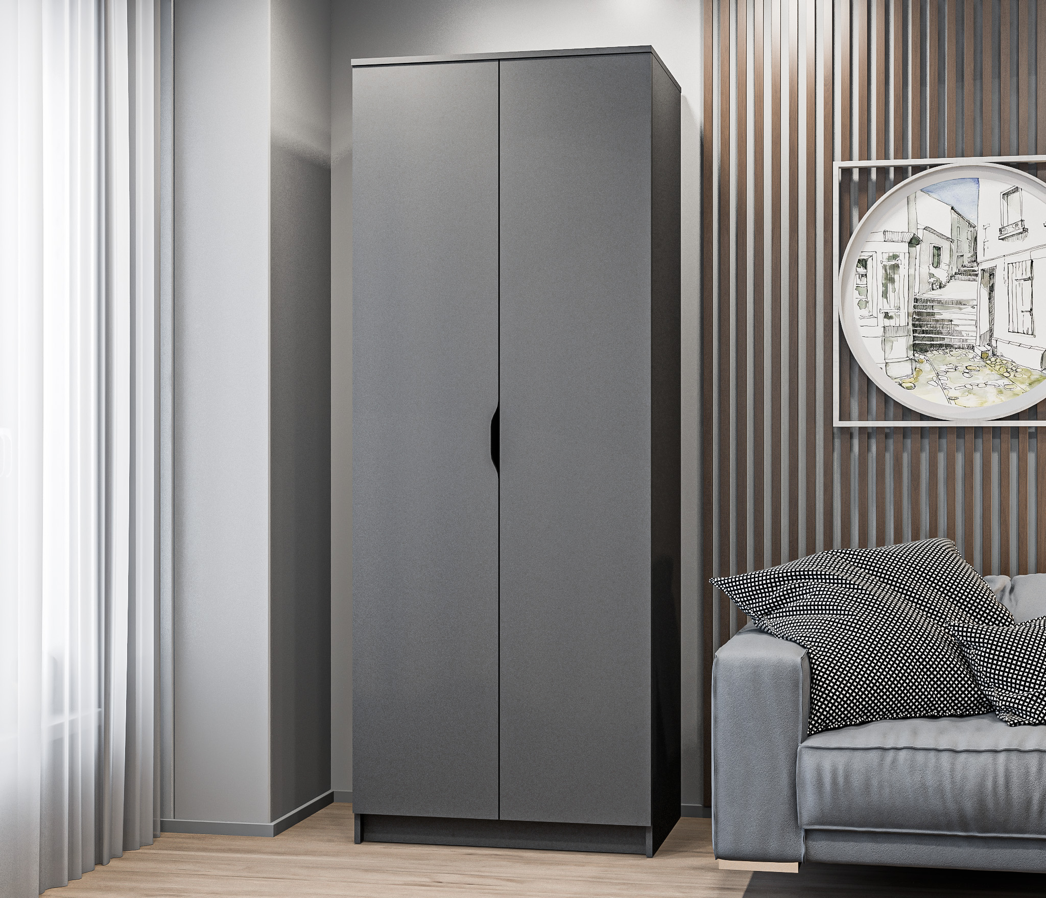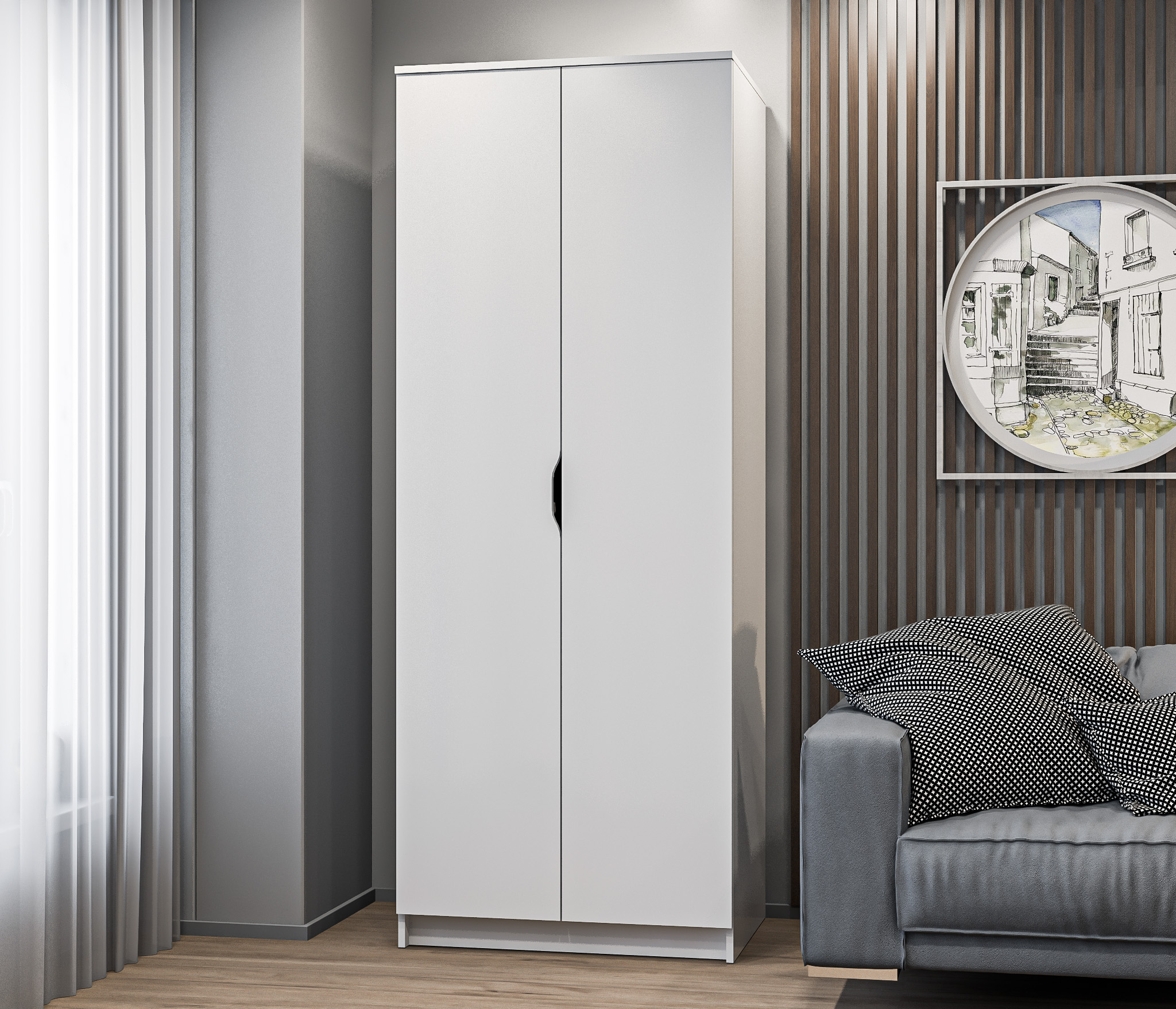 Лаконичная фурнитура, прочные крепежные элементы, протекторы, которые не позволяют повредить полы – детали, которые говорят о продуманности дизайна и достойном качестве шкафа Мамбо СБ-2676.