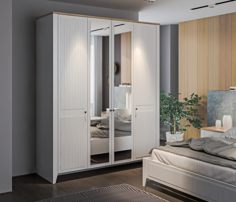 Шкаф 4х дверный Монтана СБ-3543 Белый Альпийский,Дуб Гамильтон/МДФ Дуб Белый (Белый Альпийский,Дуб Гамильтон)