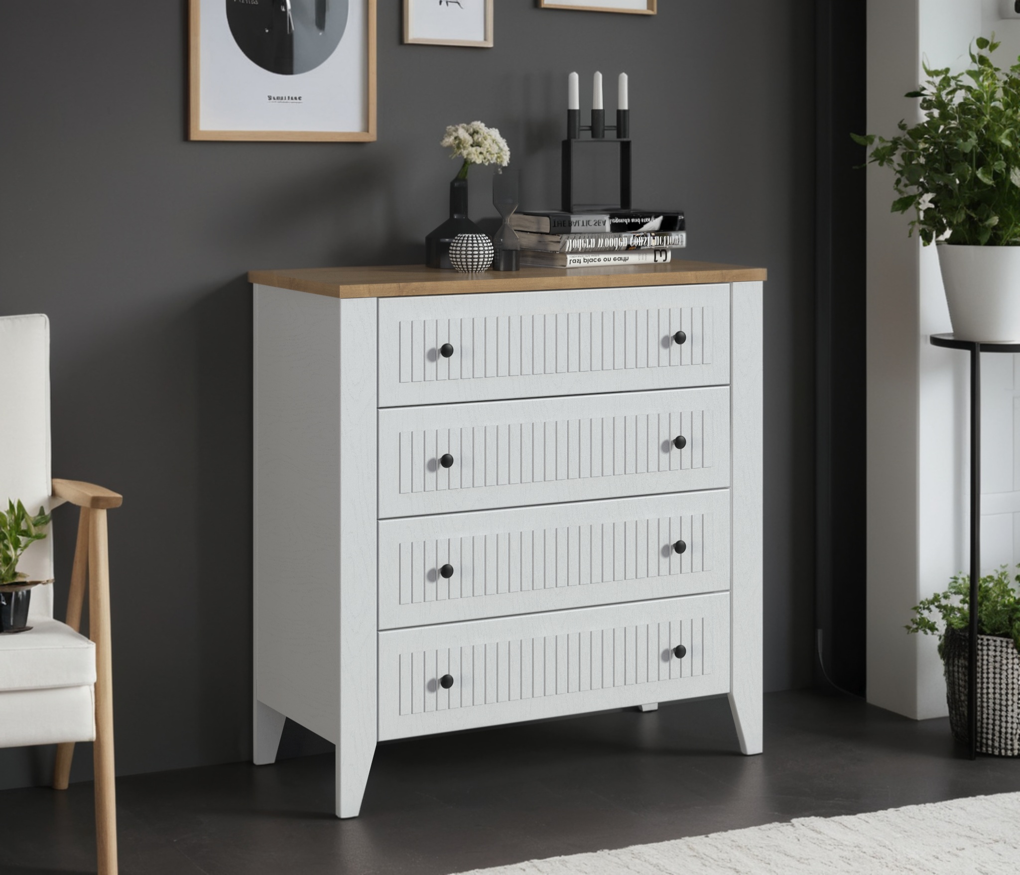 Материал корпуса: ЛДСП цвет Белый Альпийский, Дуб Гамильтон натуральный.