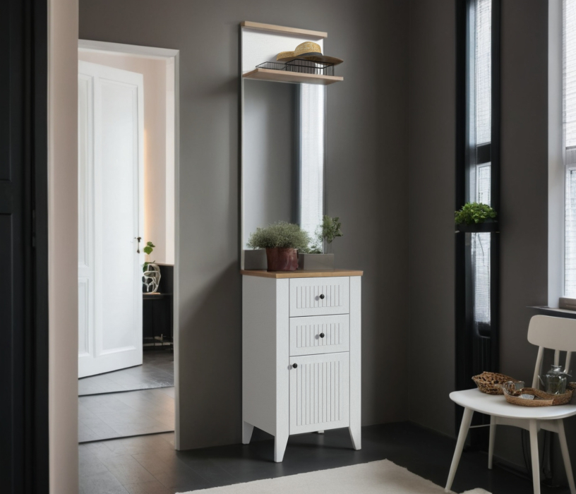 Тумба с зеркалом Монтана СБ-3551 Белый Альпийский,Дуб Гамильтон/МДФ Дуб Белый (Белый Альпийский,Дуб Гамильтон)