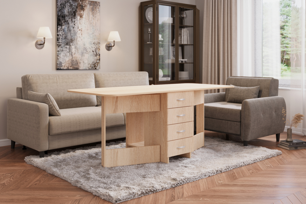 Стол-книжка с ящиками Глория 606 - удобный, красивый, мобильный раскладной журнальный стол станет украшением вашего дома.
