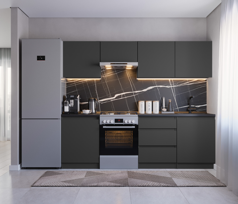 Кухонный гарнитур Леон прямой 240 см, диамант серый Код 00000334970