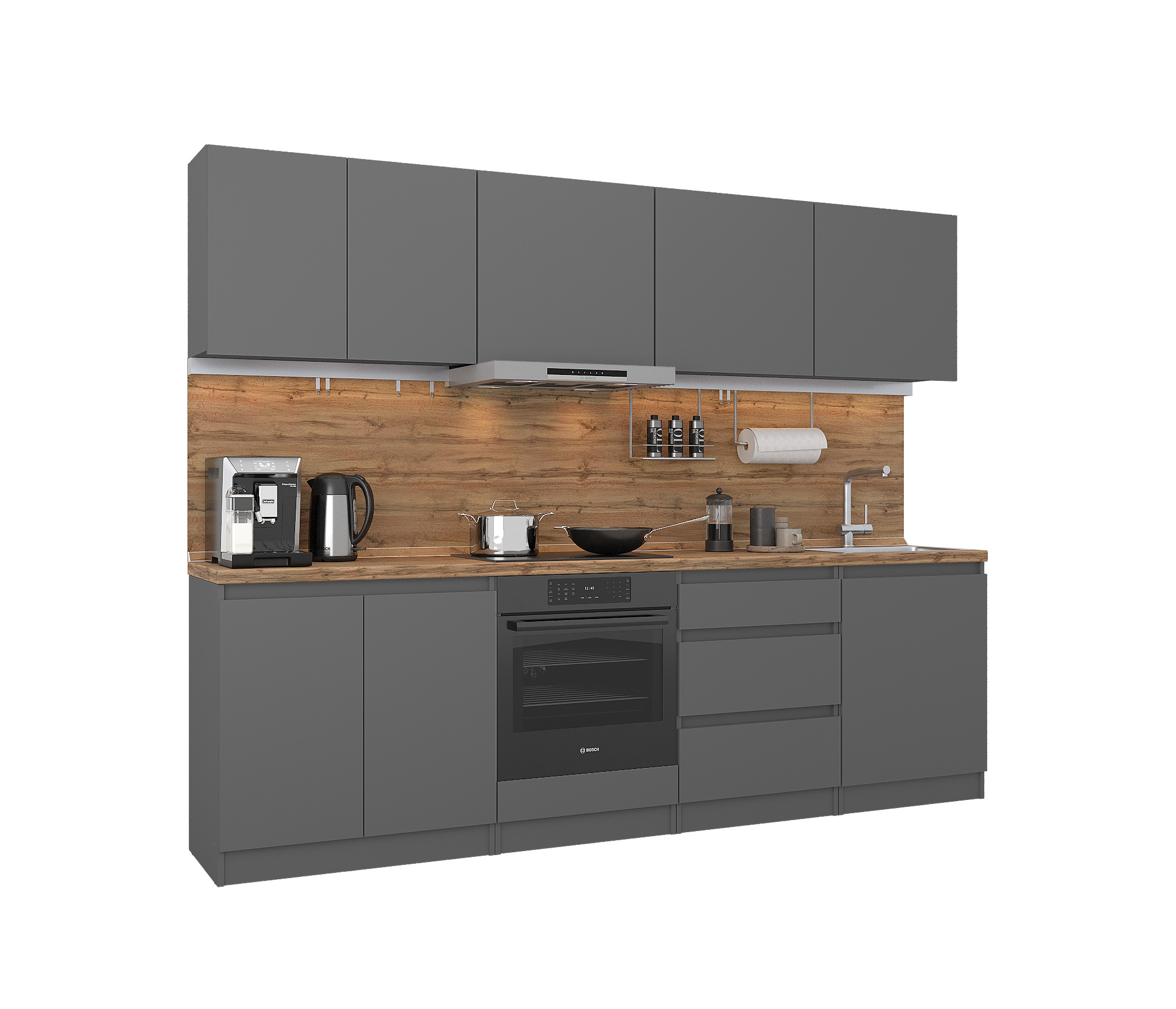 Кухонный гарнитур Леон прямой 260 см, диамант серый (Диамант серый)
