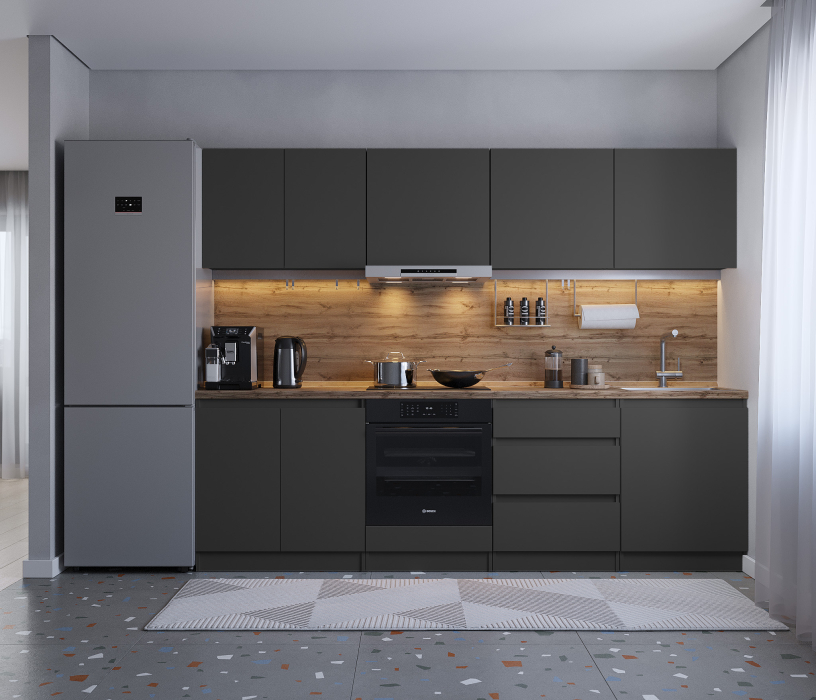 Обратите внимание, что столешница, стеновая панель, мойка и смеситель не входят в комплектацию кухни Леон и приобретаются отдельно. Это позволяет вам выбрать идеальные аксессуары и элементы для создания индивидуального дизайна вашей кухни.
