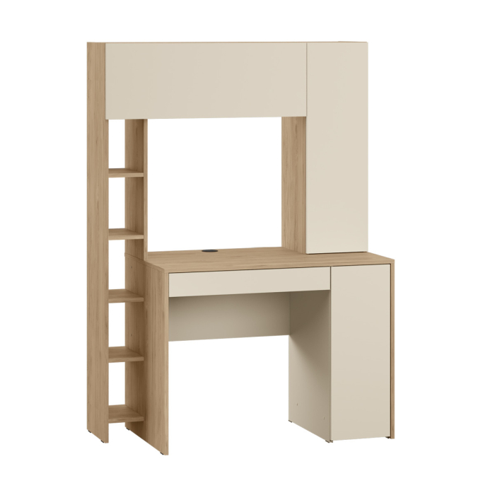 Стол компьютерный Комфорт 12.71 — мини-кабинет для комфортной работы дома или в офисе. Конструктивно стол состоит из большой столешницы, выдвижного ящика и тумбы под ней, шкафа-стеллажа и надстройки. Все элементы гармонично дополняют друг друга, составляя удобное рабочее место, занимающее небольшую площадь. На столешнице достаточно места для размещения учебных и рабочих принадлежностей, ноутбука или монитора. Также, на столешнице имеется пластиковая заглушка для протягивания проводов от техники к источнику питания. Под столешницей в центре размещен выдвижной ящик для канцелярии, а справа размещена закрытая распашной дверкой ниша, размеры которой позволяют расположить в ней системный блок компьютера стандартной величины. Шкаф-стеллаж, расположенный слева, имеет глубину меньше, чем столешница, и состоит из нескольких открытых полочек. Со столом стеллаж совмещается при помощи надстройки, представленной в виде горизонтальной и вертикальной закрытых дверками ниш. На открытых полочках Вы можете расположить документацию, учебные материалы, книги, журналы, предметы декора или игрушки. Предметы, которые необходимо скрыть от посторонних глаз, можно разместить в закрытых нишах. Стол компьютерный изготовлен на компьютеризированном оборудовании из современных материалов высокого качества. Ламинированная ДСП имеет толщину 16 мм, торцы деталей закромлены пленкой ПВХ. Подъемная дверка закреплена на газлифте, распашная – на четырехшарнирных петлях, ящик – на роликовых направляющих, ручки на фасадах пластиковые. При поставке стол разобран, надежно упакован, к изделию приложена подробная инструкция по сборке и необходимая фурнитура.