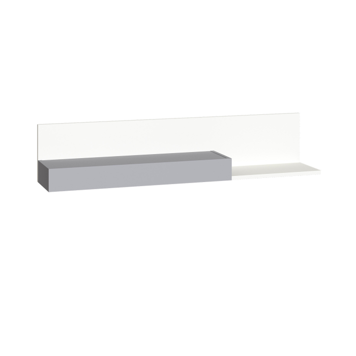 Полка представляет из себя классическую открытую двухуровневую полку с задней панелью. Полка позволит разместить молодёжные аксессуары - знаковые мелочи, подчёркивающие индивидуальность подростка. Универсальная сборка - можно собрать на любую сторону. Базовый белый цвет, сочетаясь с акцентным серым, создаёт нейтральную основу интерьера, чтобы подчеркнуть личные вещи и аксессуары. Корпус и фасад полки изготовлены из экологически чистой ламинированной ДСП 16 мм, торцы окромлены ПХВ плёнкой 0,4 мм.