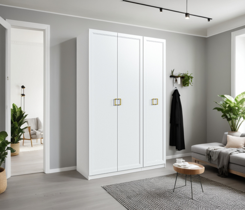 Трехдверный шкаф Ассоль — элегантное и функциональное решение для хранения. Корпус выполнен из прочного ЛДСП, фасады из качественного МДФ с изысканными золотыми ручками. Внутреннее наполнение включает полки, ящики и штангу для одежды, обеспечивая удобство и порядок в вашем пространстве. Шкаф идеально впишется в любой интерьер, сочетая стиль и практичность.