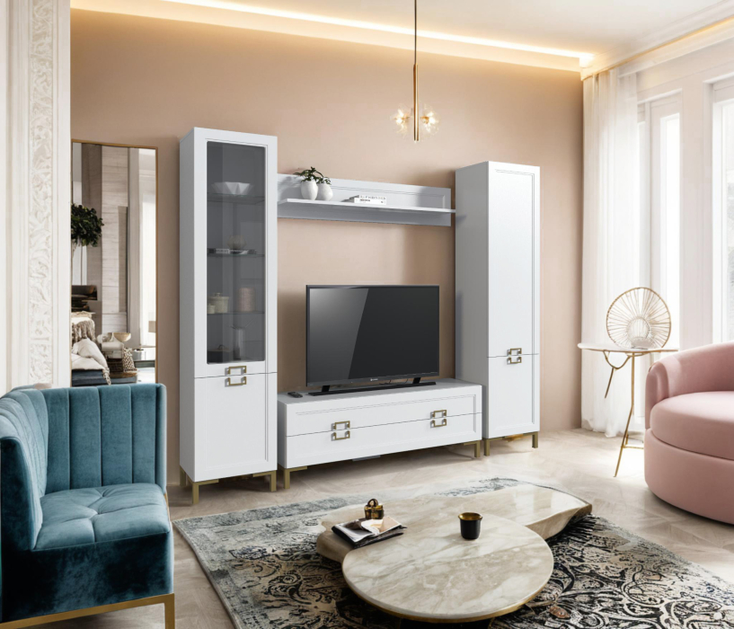 Модульная коллекция Ассоль в белом цвете — это стильное и функциональное решение для вашего интерьера. Корпус выполнен из качественного ЛДСП, а фасады из прочного МДФ, что обеспечивает долговечность и легкость в уходе. Элегантные золотые ручки добавляют изысканности и шарма. Модули коллекции можно комбинировать по вашему усмотрению, создавая уникальные и практичные решения для любого пространства, или выбрать из готовых комплектов.<br>Габаритные размеры гостиной: ширина 2500 мм, высота 2170 мм, глубина 410 мм