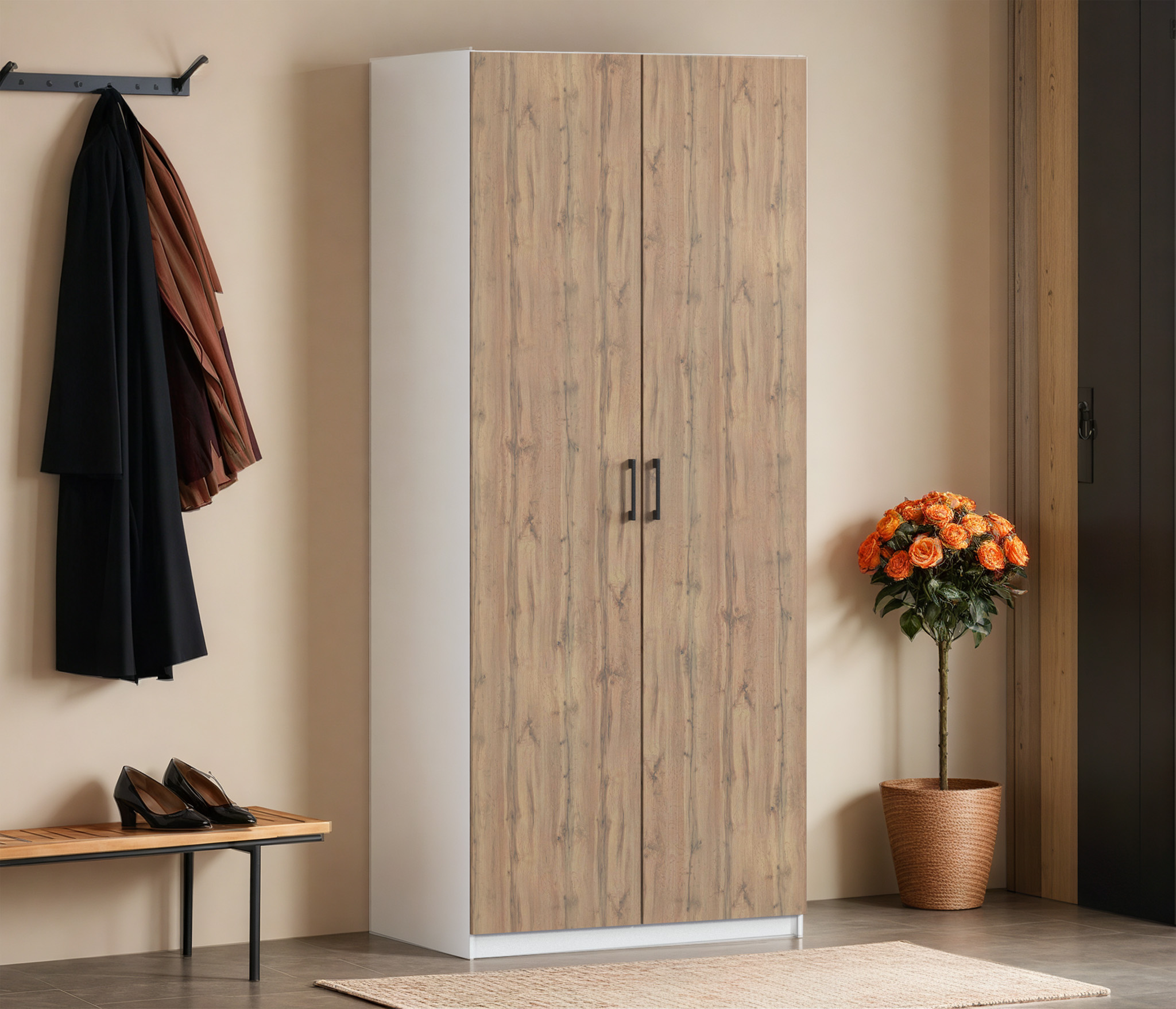 Шкаф двухдверный Макс 1000 мм, вариант №4 (ЛДСП) (Дуб вотан/Белый)