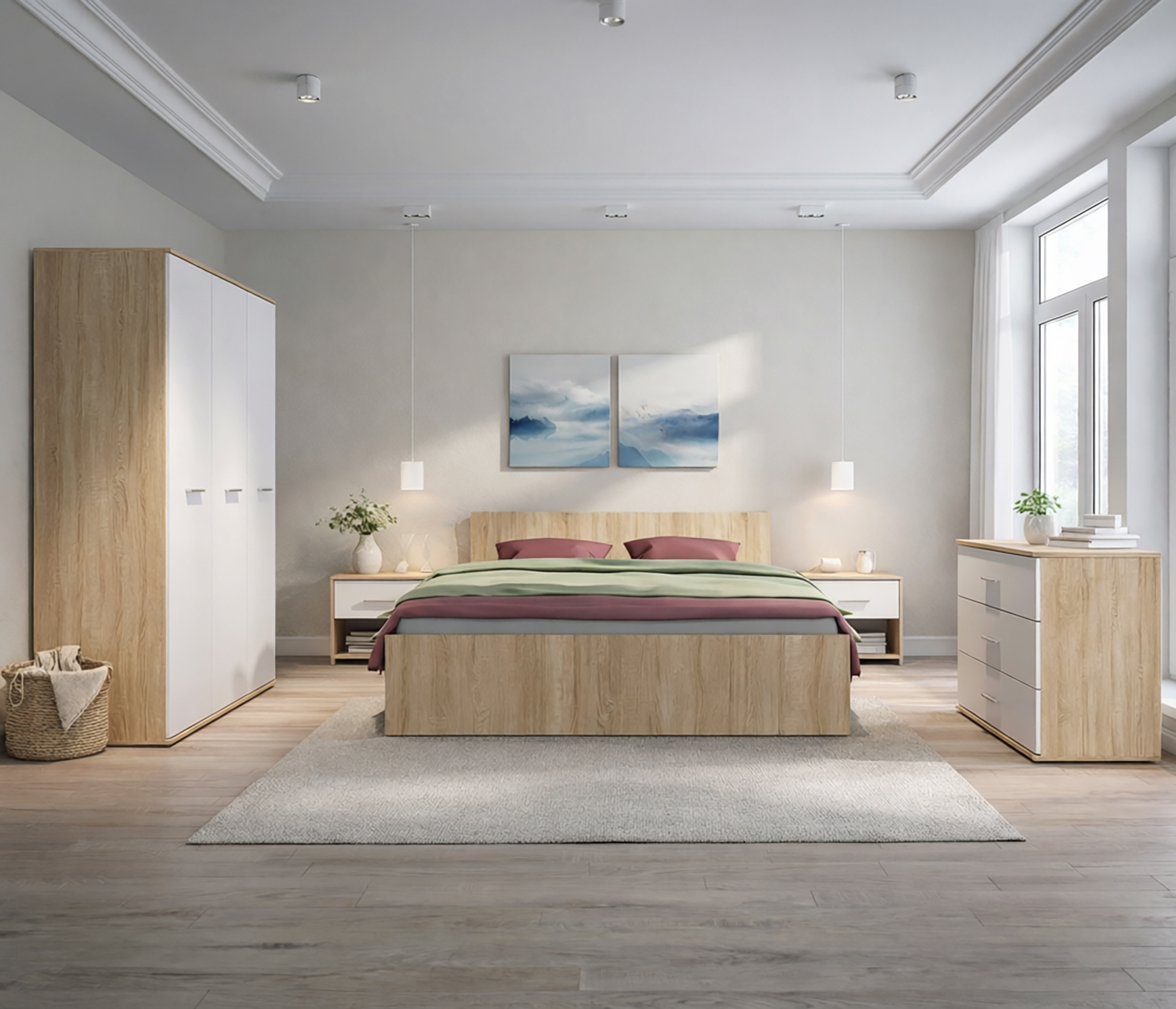 Особенностью данной модели являются плавные вырезы в фасадах, которые не только удобны для открывания, но и добавляют оригинальности. Внутри этих вырезов расположены вставки цвета Дуб вотан, что создает контраст и подчеркивает эстетику мебели.