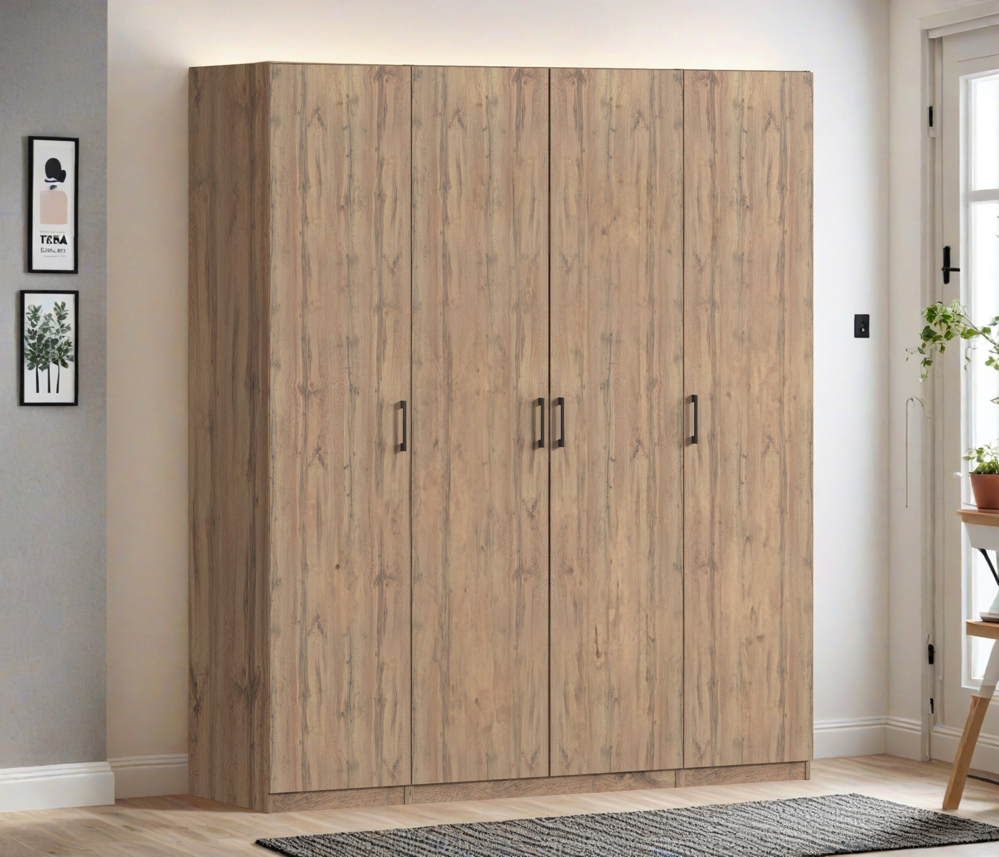 Шкаф четырехдверный Макс 2000 мм, вариант №1 (ЛДСП, корпус дуб вотан) (Дуб Вотан)
