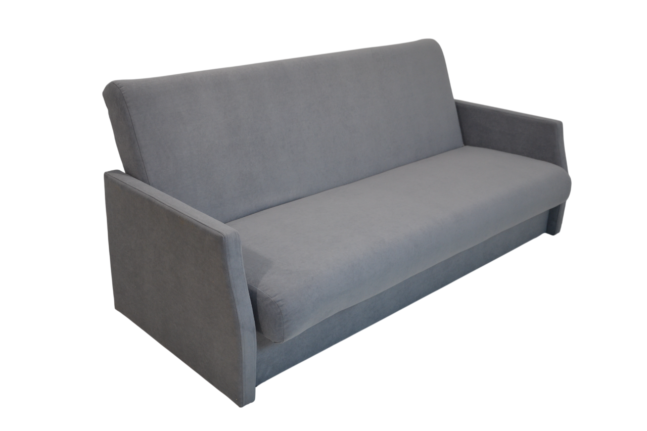 Габариты: 1950*600*1100; Спальное место: 1900*1200. Ткань - подлокотники - к/з, сиденье - велюр. Материалы: пиломатериал хвойных пород, фанера, ДВП, ДСП. Синтепон, войлок, пружинный блок. Механизм книжка. Ящик для белья.