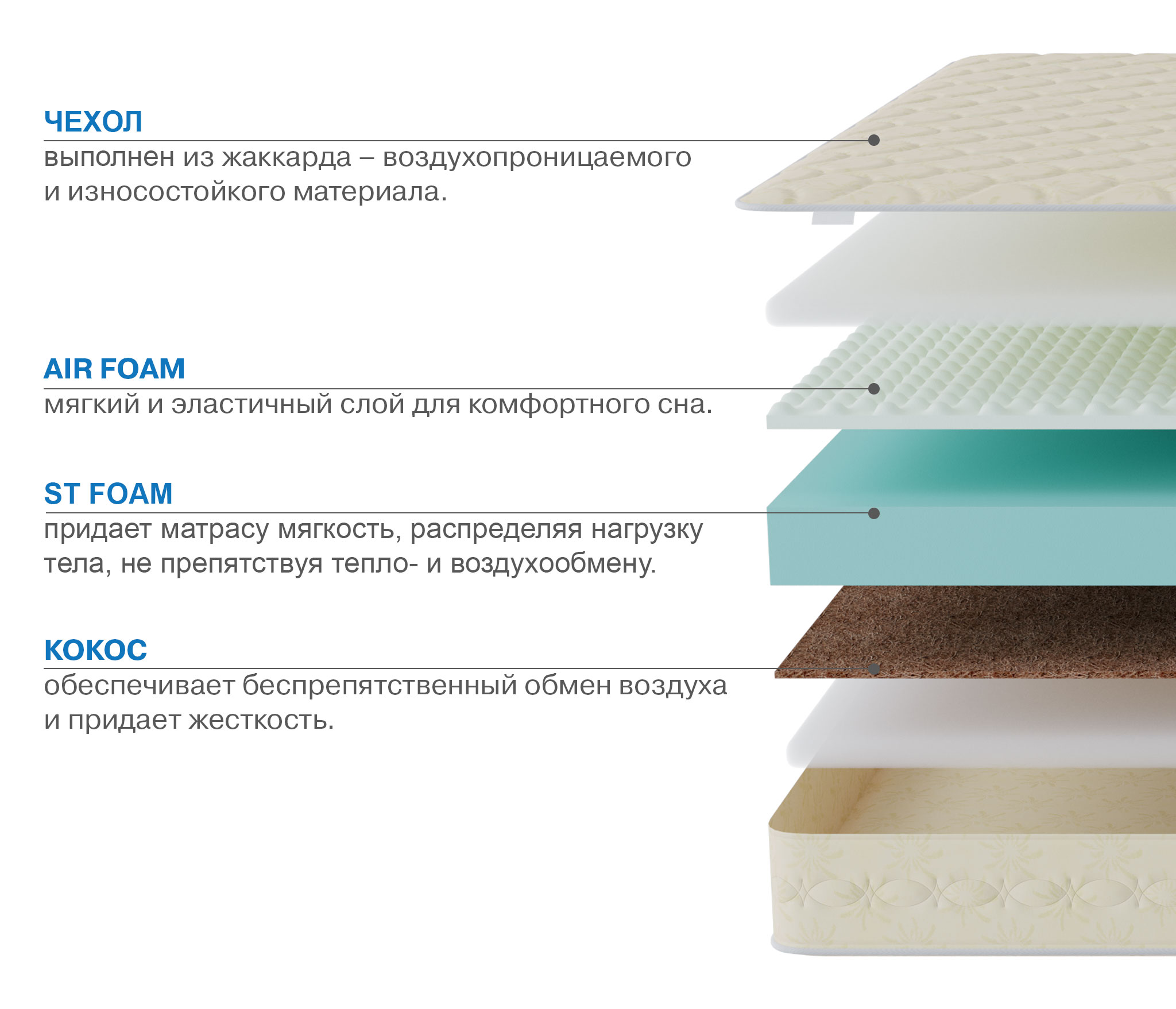 Чехол: Хлопковый жаккард (coton) стеганный на пенополиуретане Н8мм