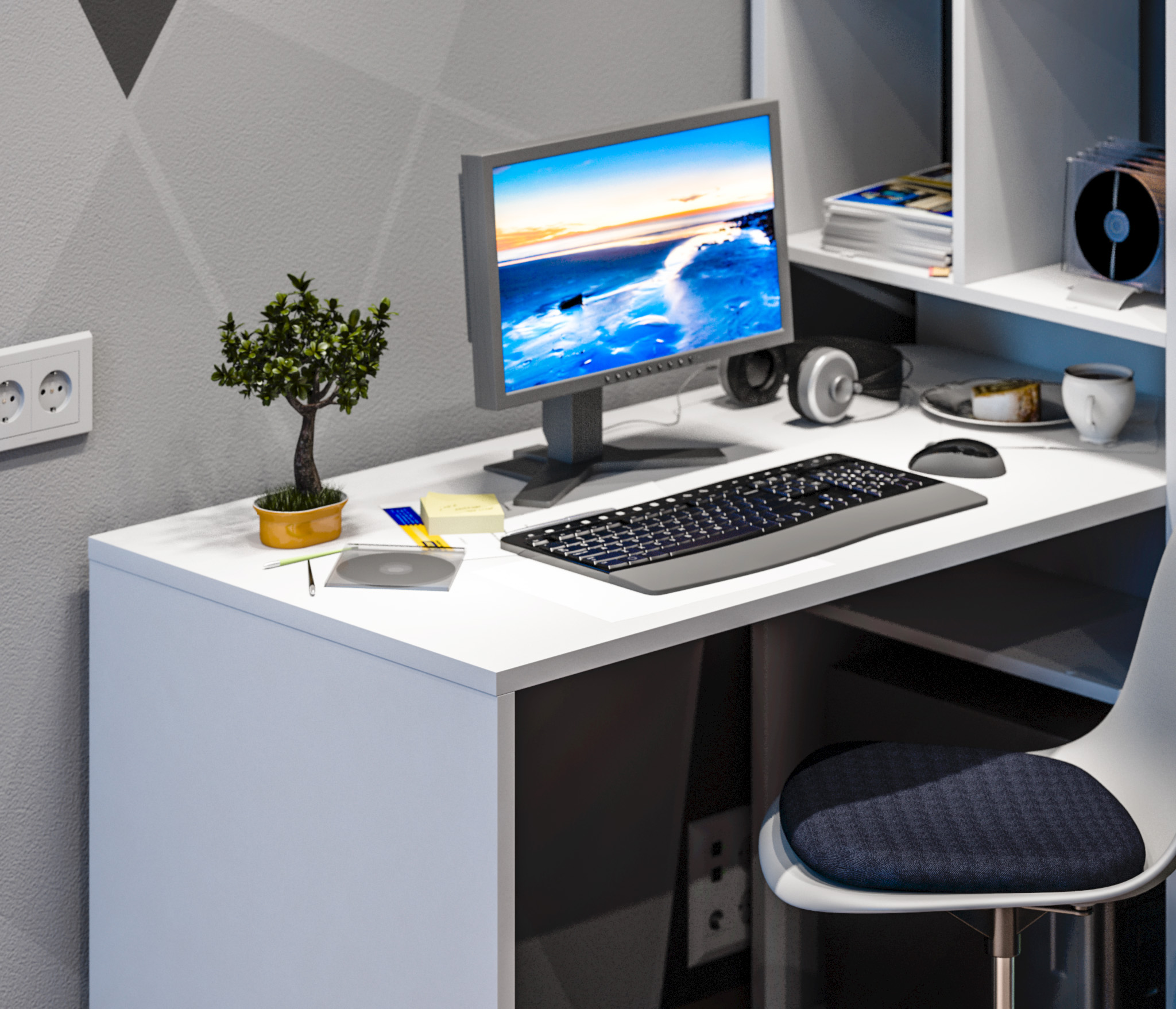 Стеллаж «Техно» в новом белом цвете выбор для тех, кому необходимо организовать эргономичную зону для занятий или работы. Стеллаж можно устанавливать как в прямой компоновке, так и меняя ее, при этом столешница может быть как с правой так и с левой стороны. Длину изделия можно установить от 150 до 199 см, прикрепив столешницу на необходимом расстоянии от стеллажа. Можно сделать угловую компоновку, закрепив столешницу перпендикулярно к стеллажу с левой или правой стороны. Стеллаж оснащен креплением для стены.