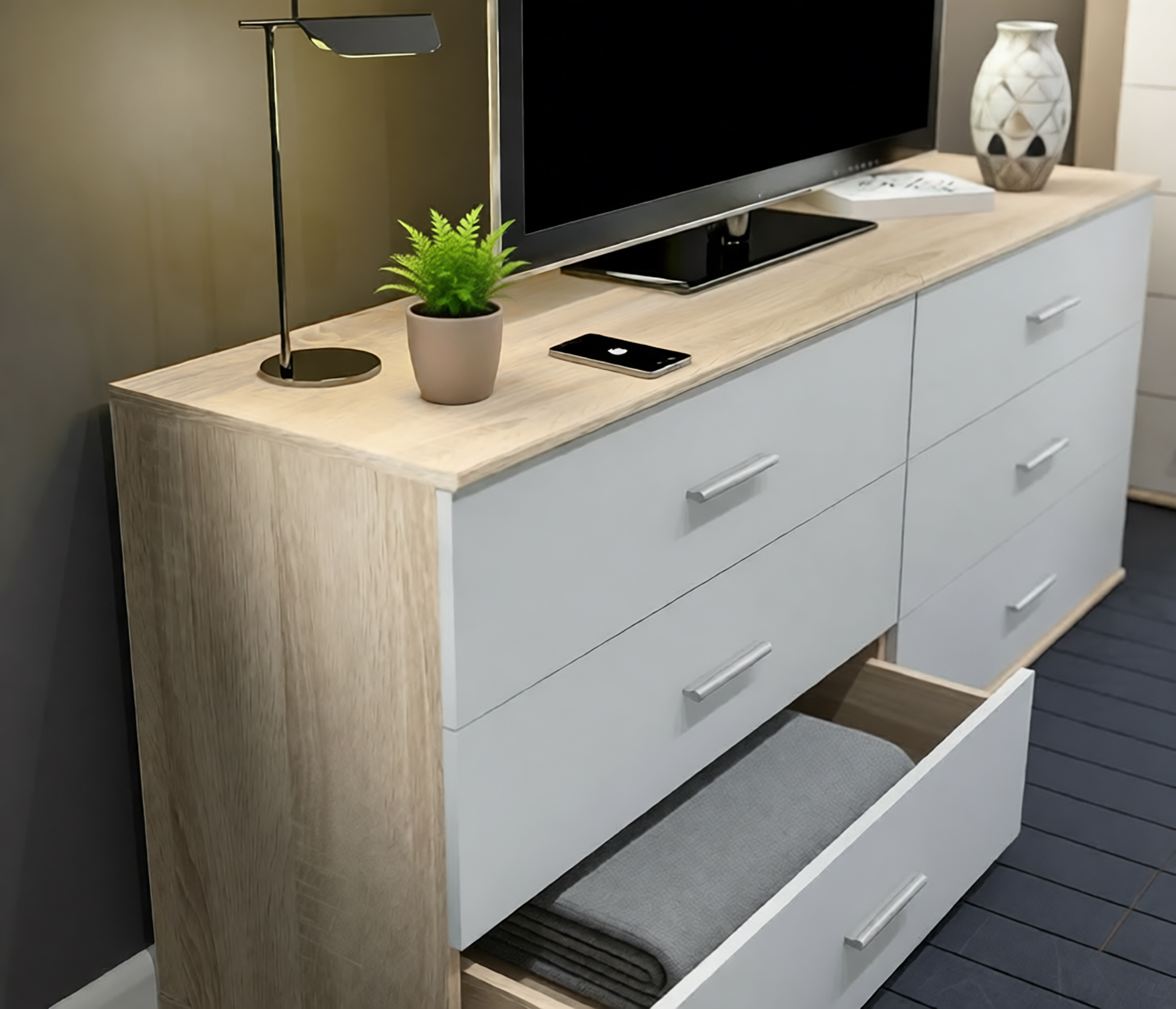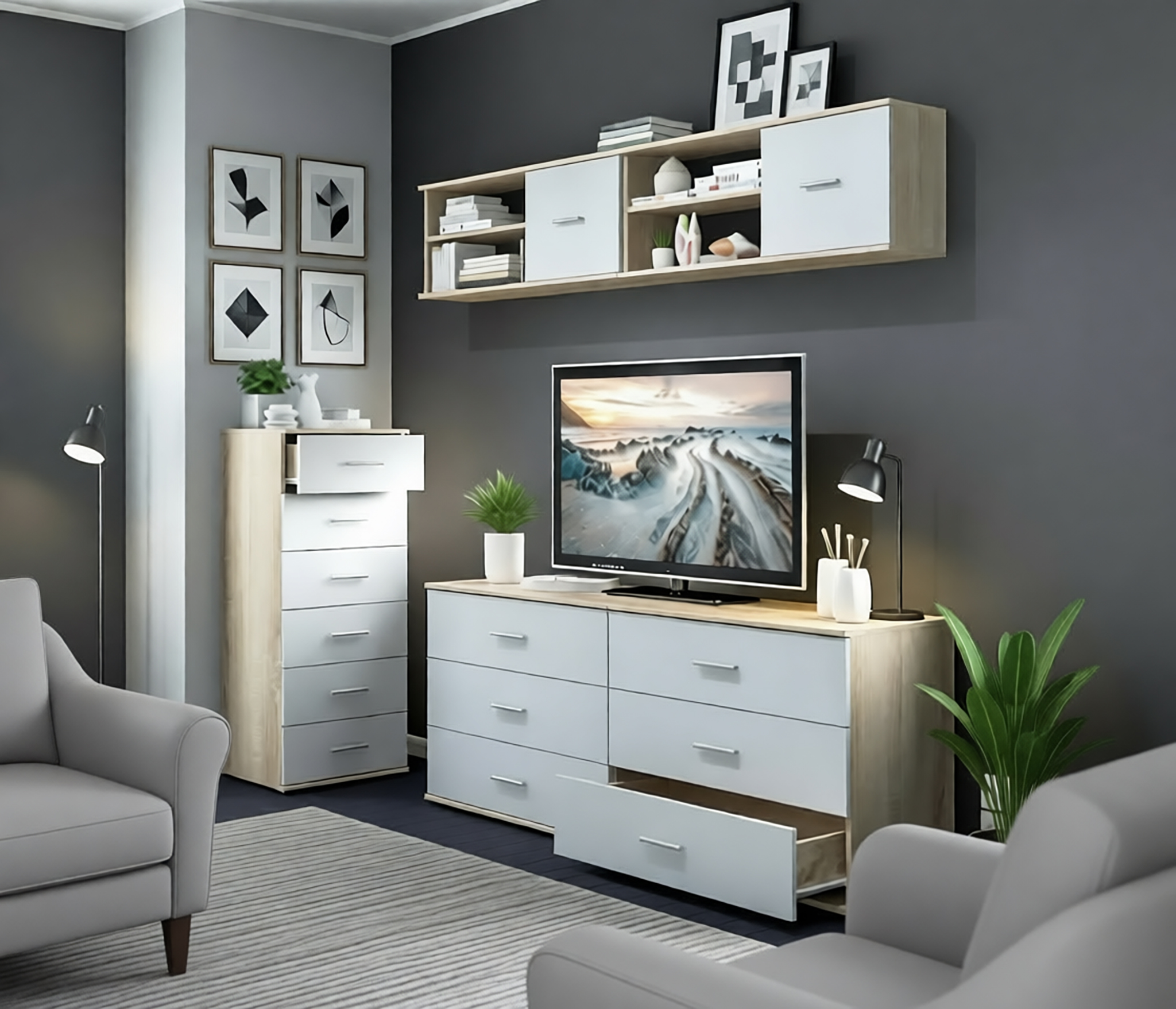 Комод Мамбо СБ-2540 (Дуб Сонома, Белый)