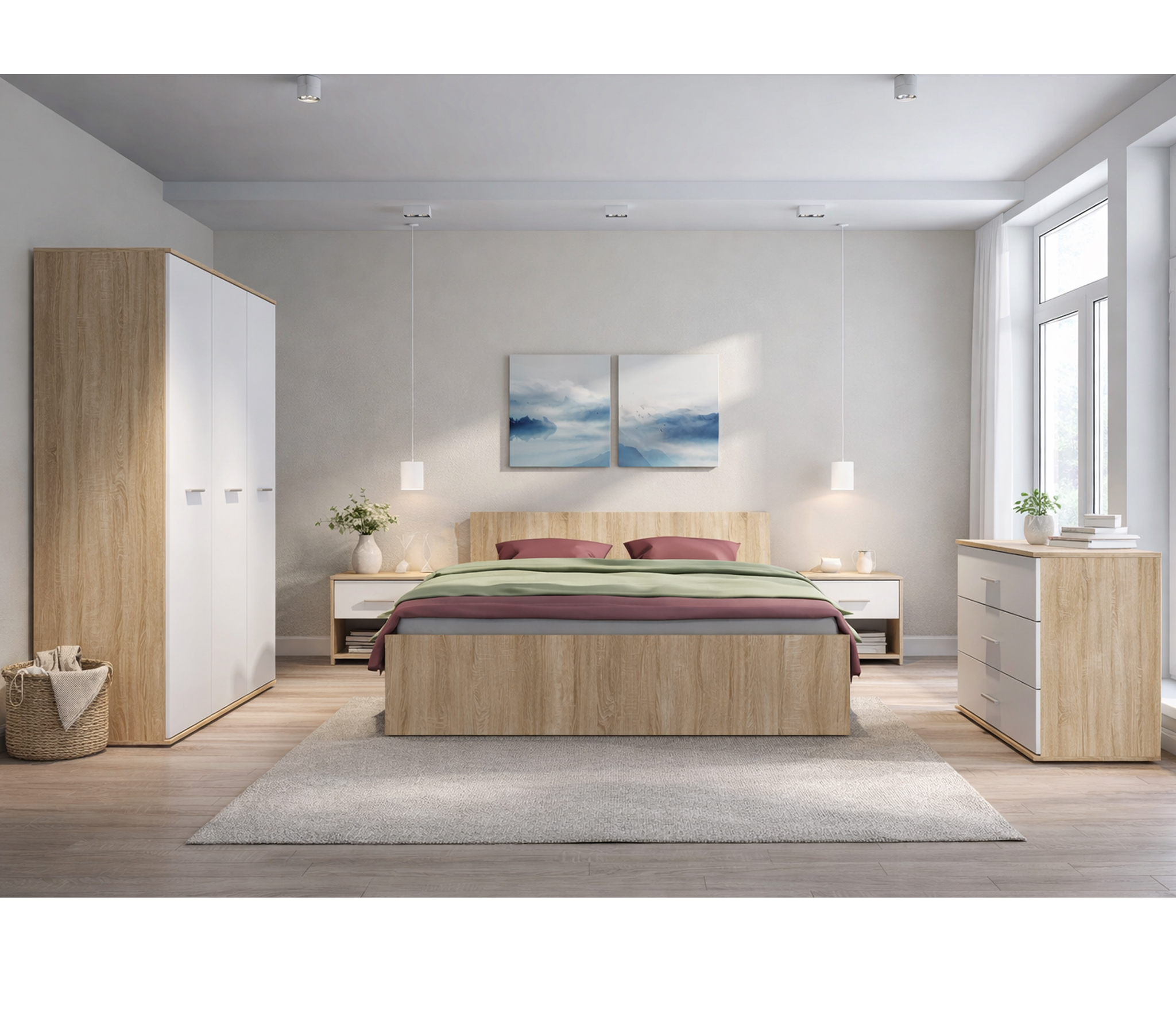 Мамбо Спальня Комплект 3 Дуб Сонома/Белый (Дуб Сонома/Белый)