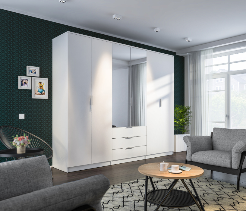 Шкаф 6-ти дверный Николь СБ-2593/1 Белый (Белый)