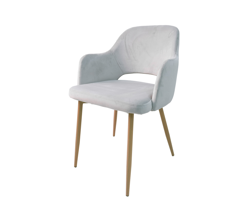 Стул -кресло с металлическими ножками, покрыт пленкой в цвет дерева. Сиденье и спинка изготовлены из фанеры с мягким слоем пенополиуретана, обиты бархатом, который чрезвычайно приятен на ощуп, устойчив к механическим повреждениям и легко очищается от грязи. Тонкая декоративная строчка делает модель еще более элегантной. Спинка сиденья наклонена под небольшим углом для удобной посадки. Размер: 560*850*770мм. Это кресло придаст нотку изысканности и стиля вашему интерьеру.