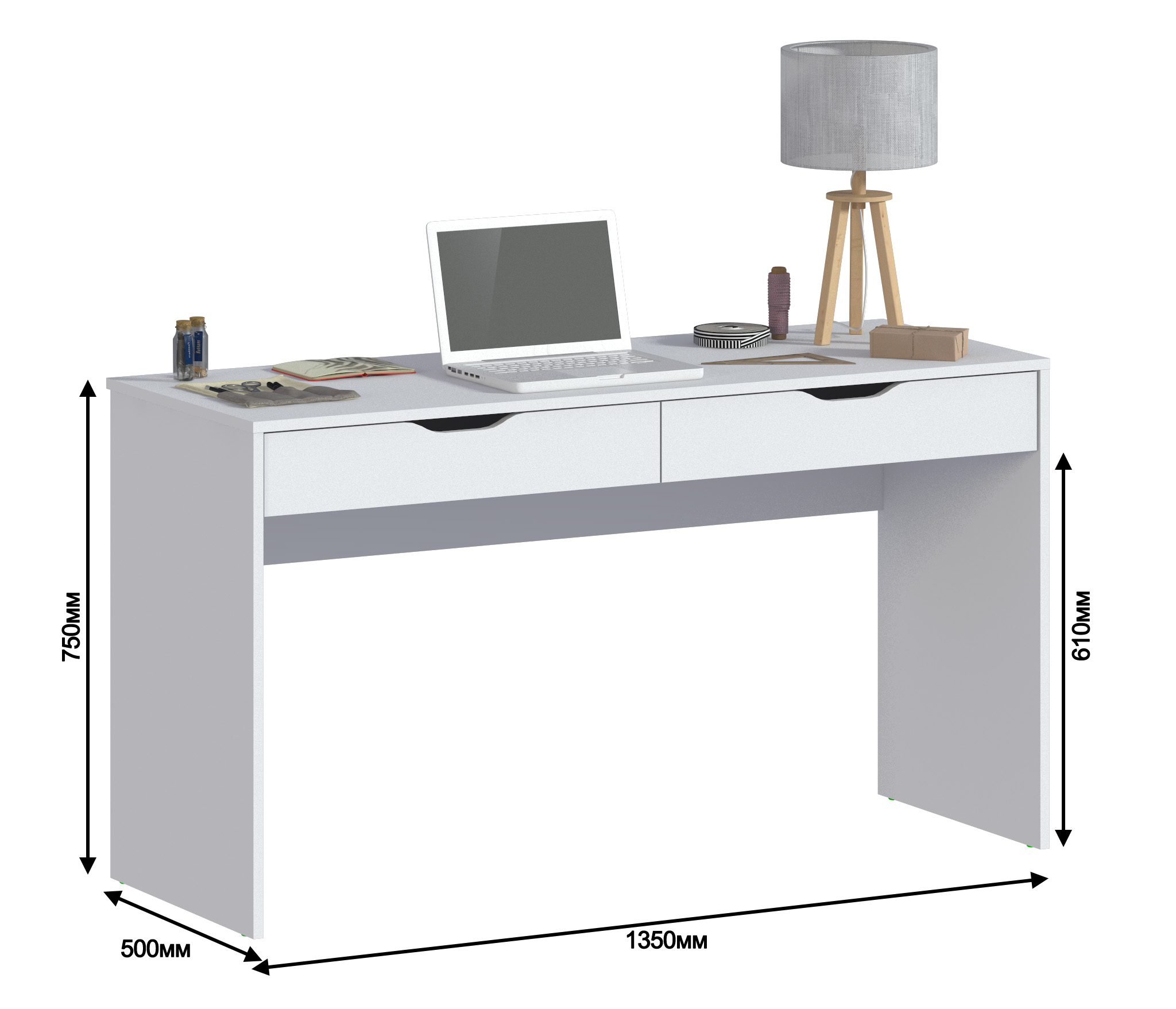 Стол Бруклин СБ-3335 – продуманное и комфортное рабочее место. Он может занять достойное место в кабинете, комнате школьника или студента, а также в офисе. Габариты стола Бруклин – ширина 135, высота 75 и глубина 50 см. Под рабочей поверхностью расположены два вместительных выдвижных ящика для хранения разных вещей.