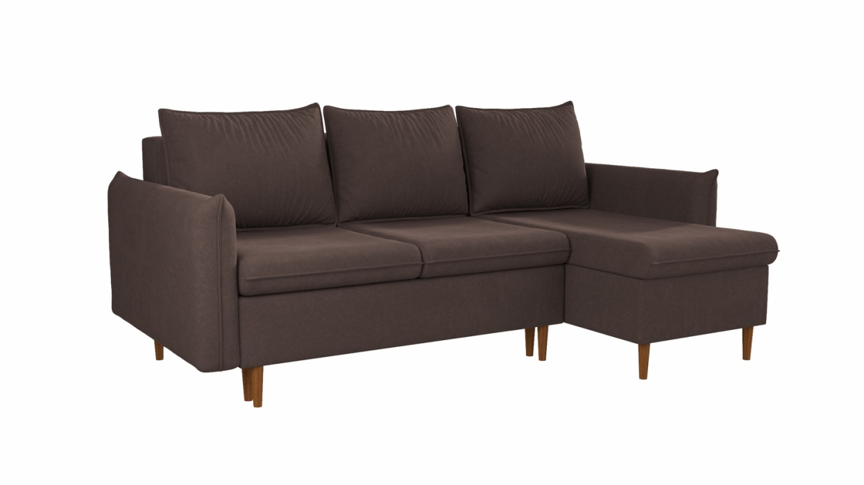 Угловой диван АМиКо 2, вельвет (Коричневая кожа)