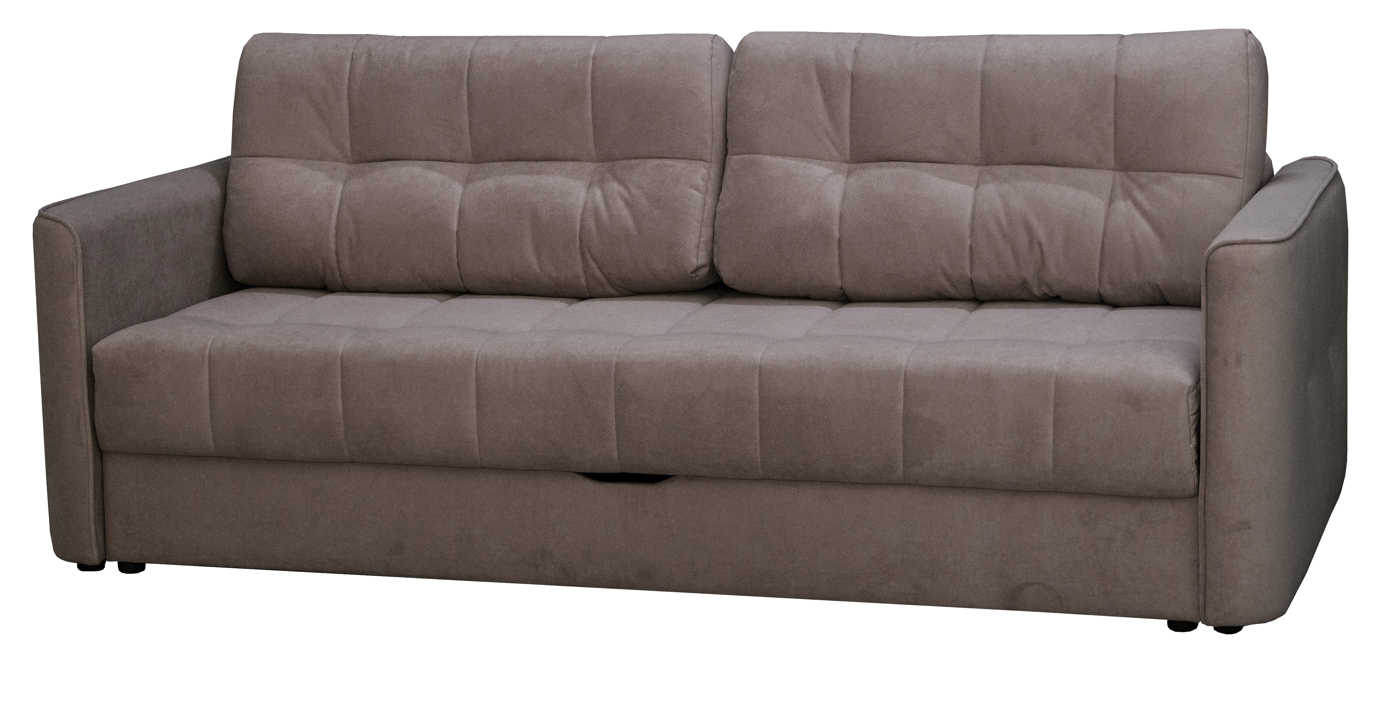 Радиусные углы «сглаживают» изделие. Спальное место легко трансформируется в большую удобную кровать – механизм трансформации «Тик-Так» удобный и лёгкий в эксплуатации. Сиденье создано по технологии «Split Foam». Наполнитель изготовлен из рассечённой анатомической пены, соединённой в несколько слоёв. Сиденье средней жёсткости. Ортопедическое основание «Birch battens» - средней гибкости, на основе берёзовых лат. Идеально подходит для анатомических моделей.