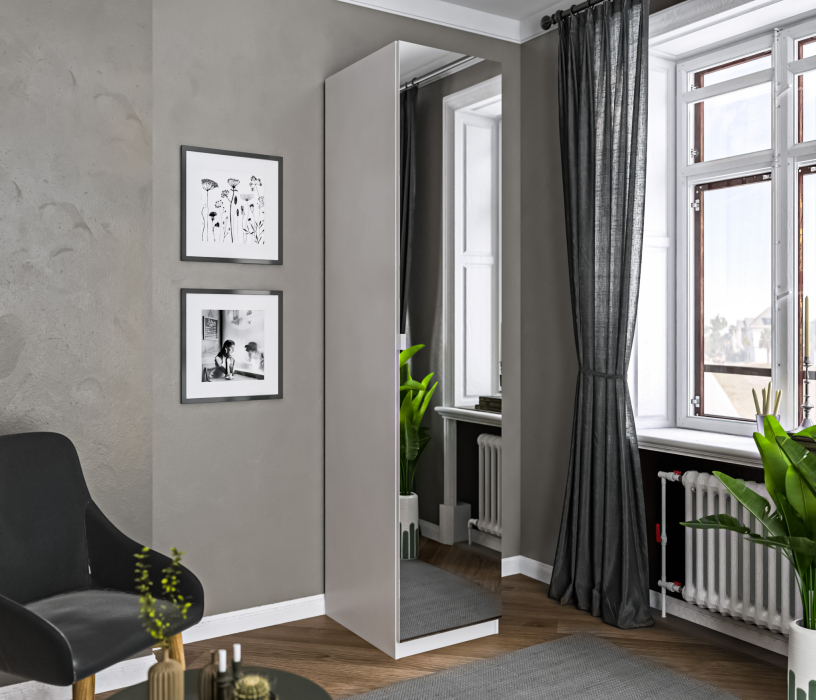 Макс СБ-3220 Каркас гардероба 500 БелыйМакс СБ-3226 Дверь ДСП с зеркалом Диамант Серый