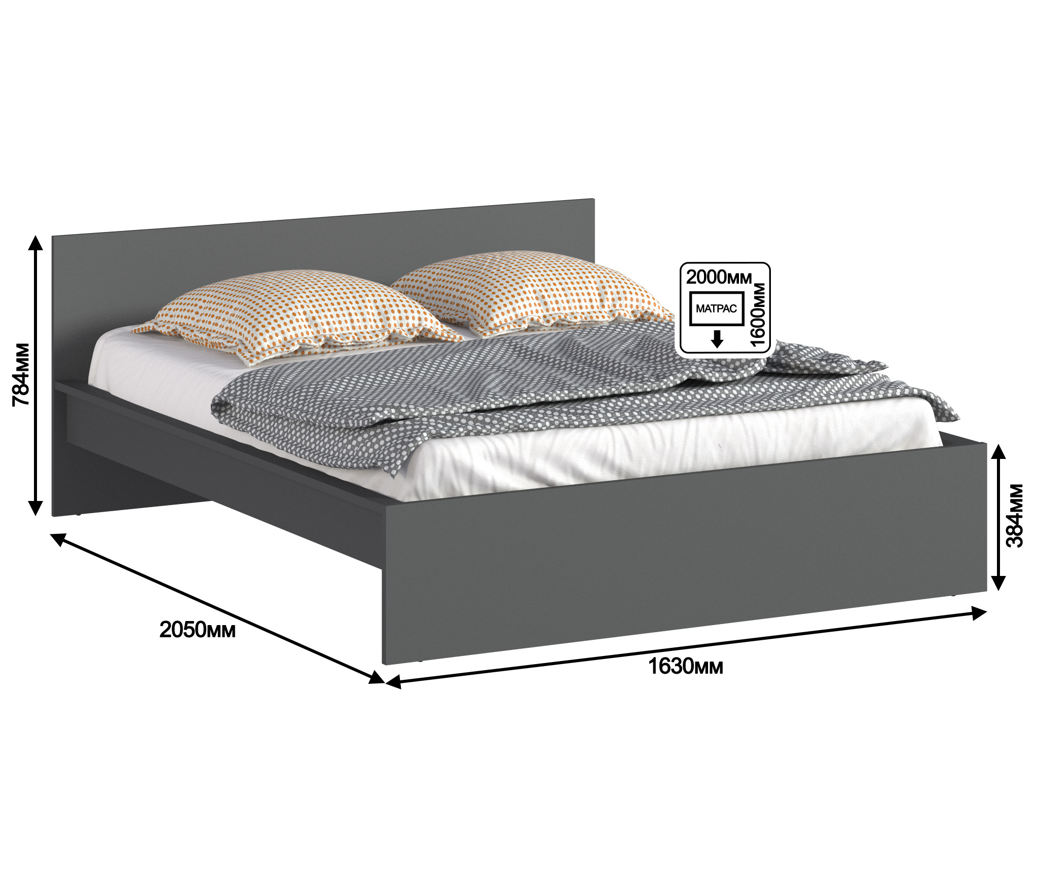 Дополнительно рекомендуем приобрести матрас размером 1600х2000 мм.