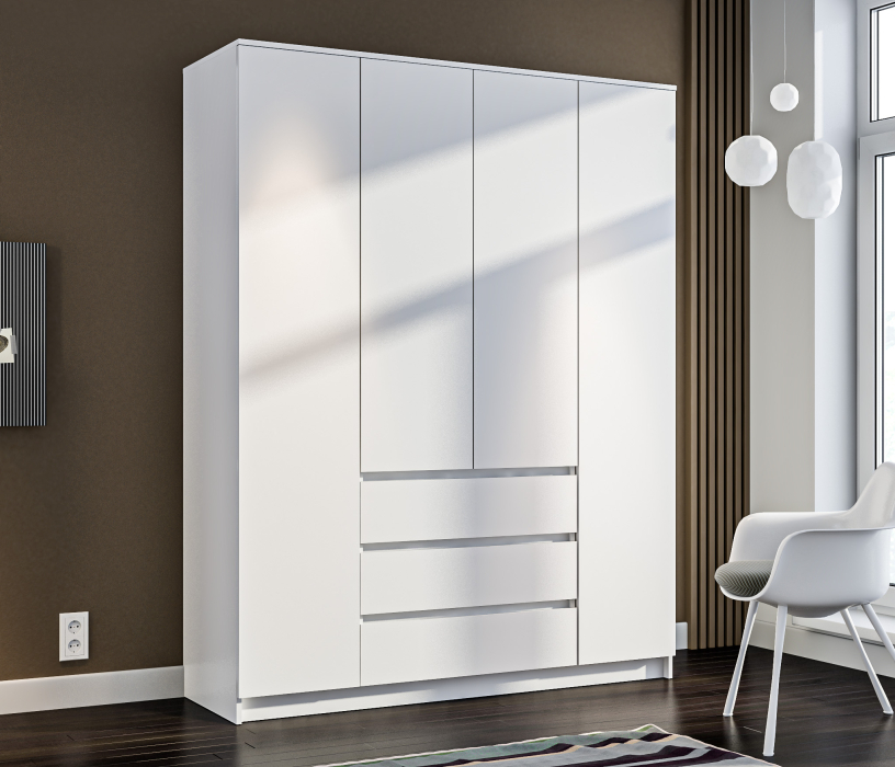 Шкаф 4 дверный с ящиками Леон СБ-3364 (Белый)
