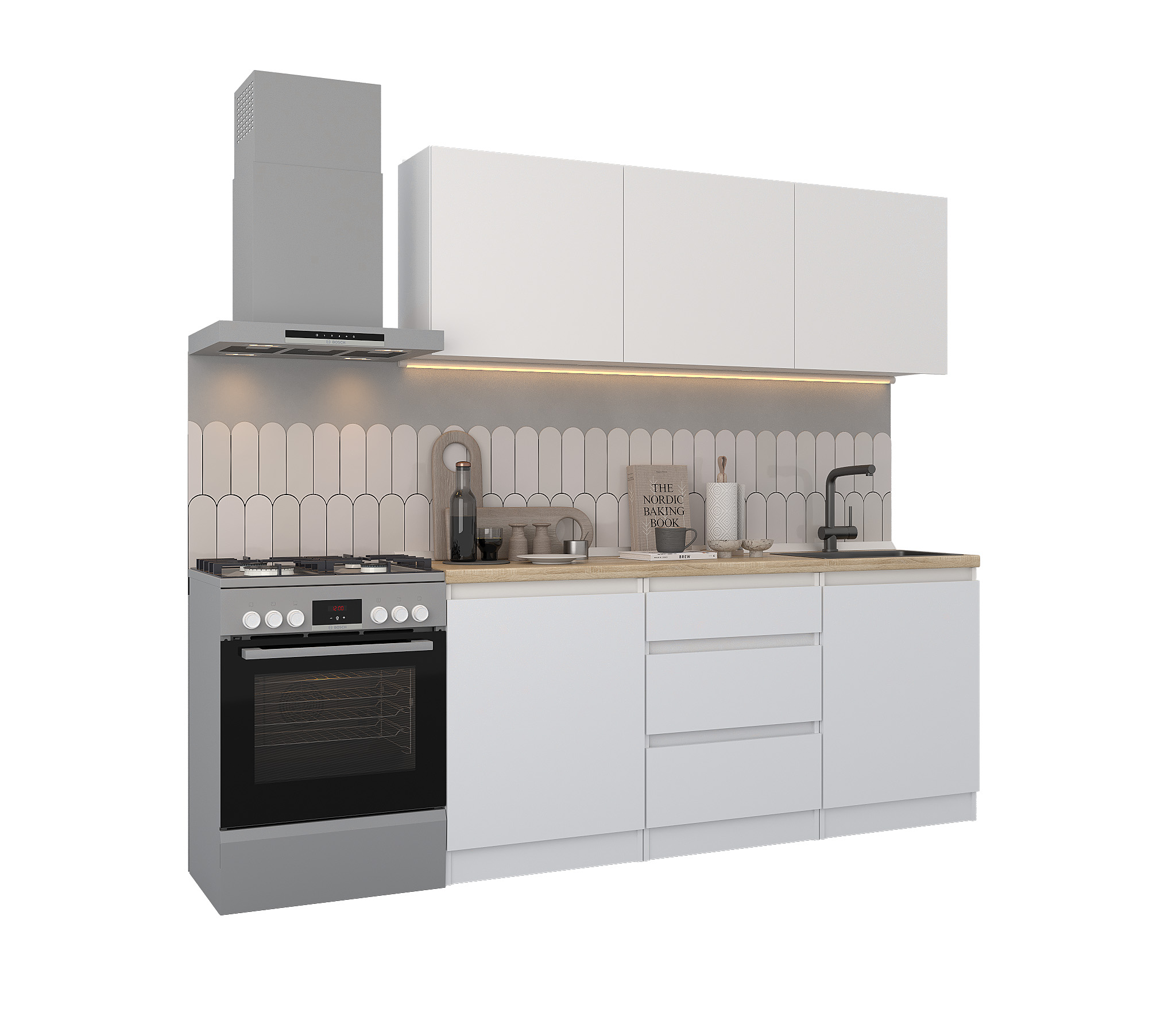 Обратите внимание, что столешница, стеновая панель, мойка и смеситель не входят в комплектацию кухни Леон и приобретаются отдельно. Это позволяет вам выбрать идеальные аксессуары и элементы для создания индивидуального дизайна вашей кухни.