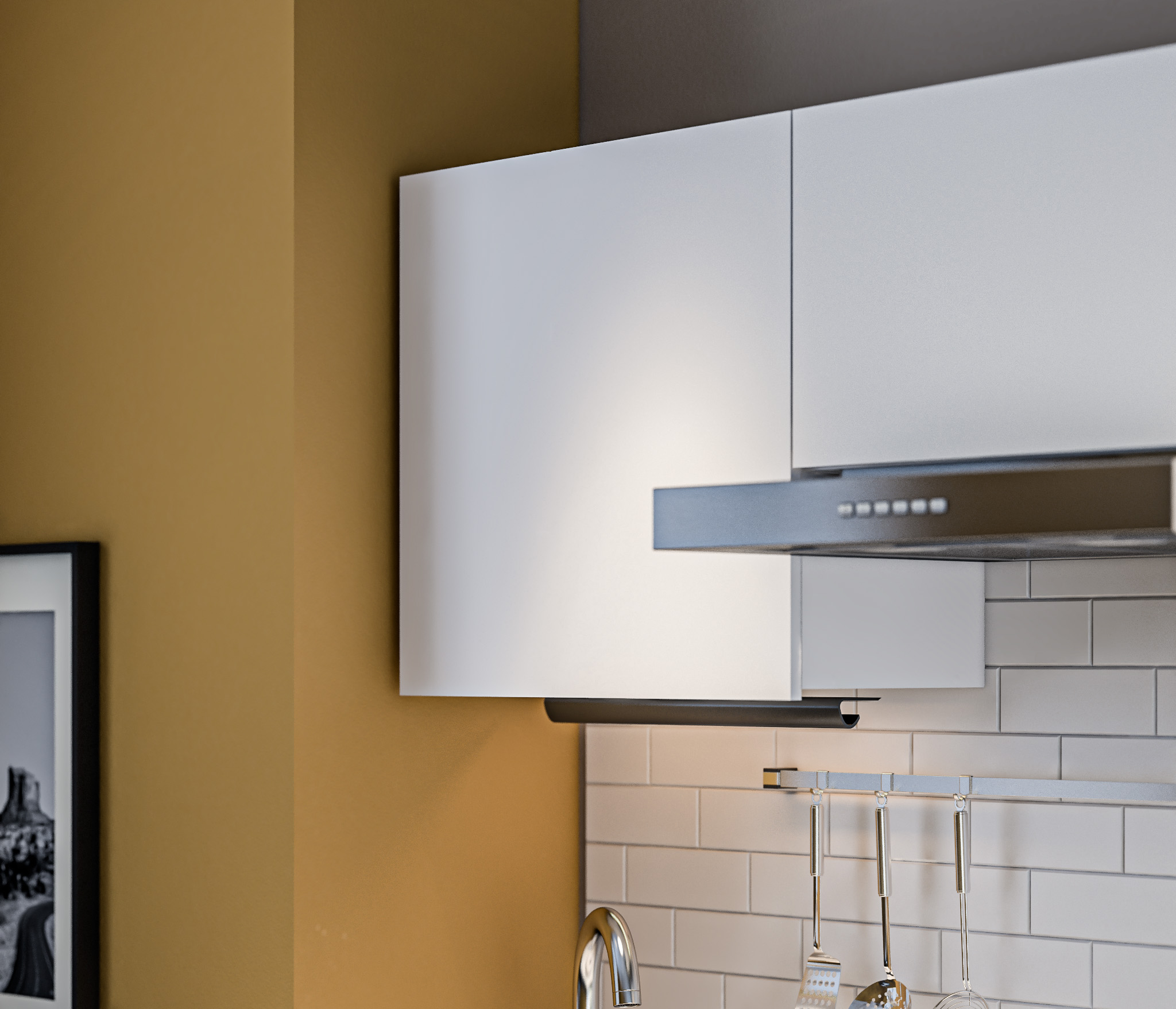 Кухня Леон также включает в себя шкаф под вытяжку.